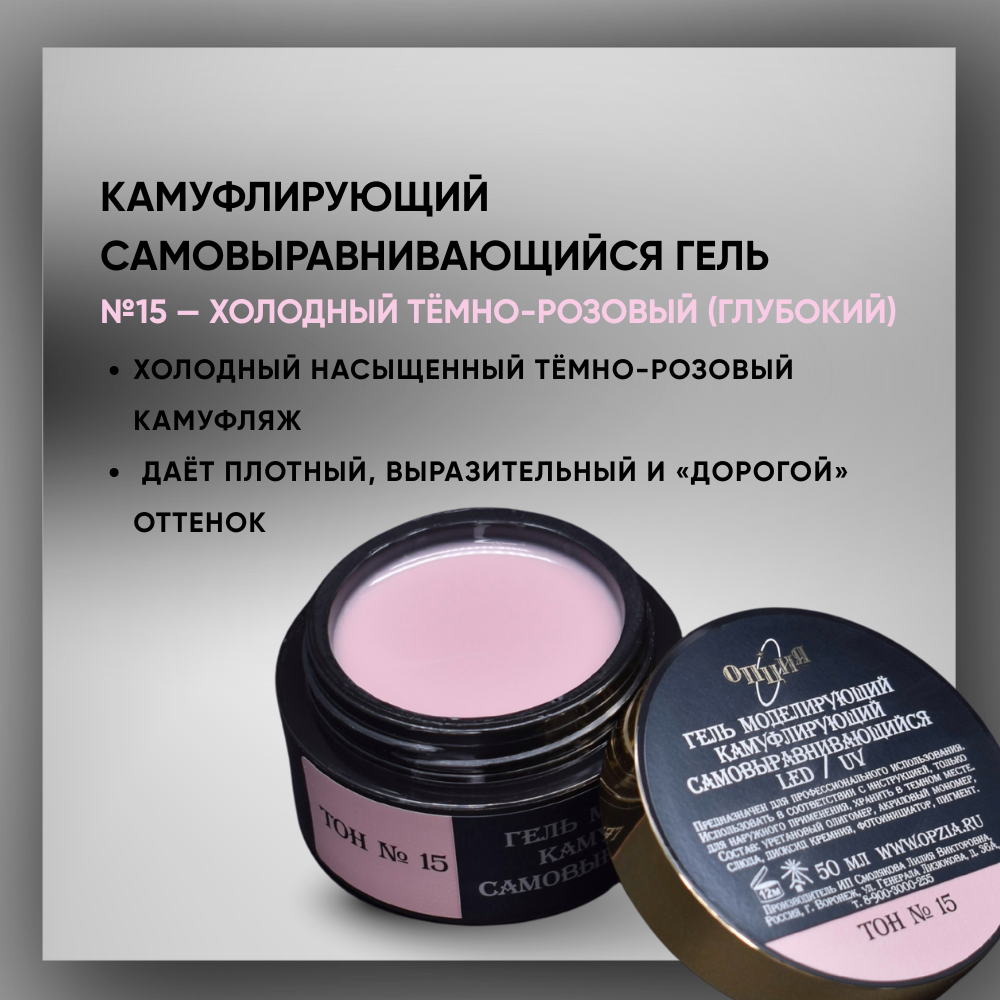 Гель ТМ Опция Тон 15, самовыравнивающийся, камуфлирующий темно-розовый (холодный), 15 мл.