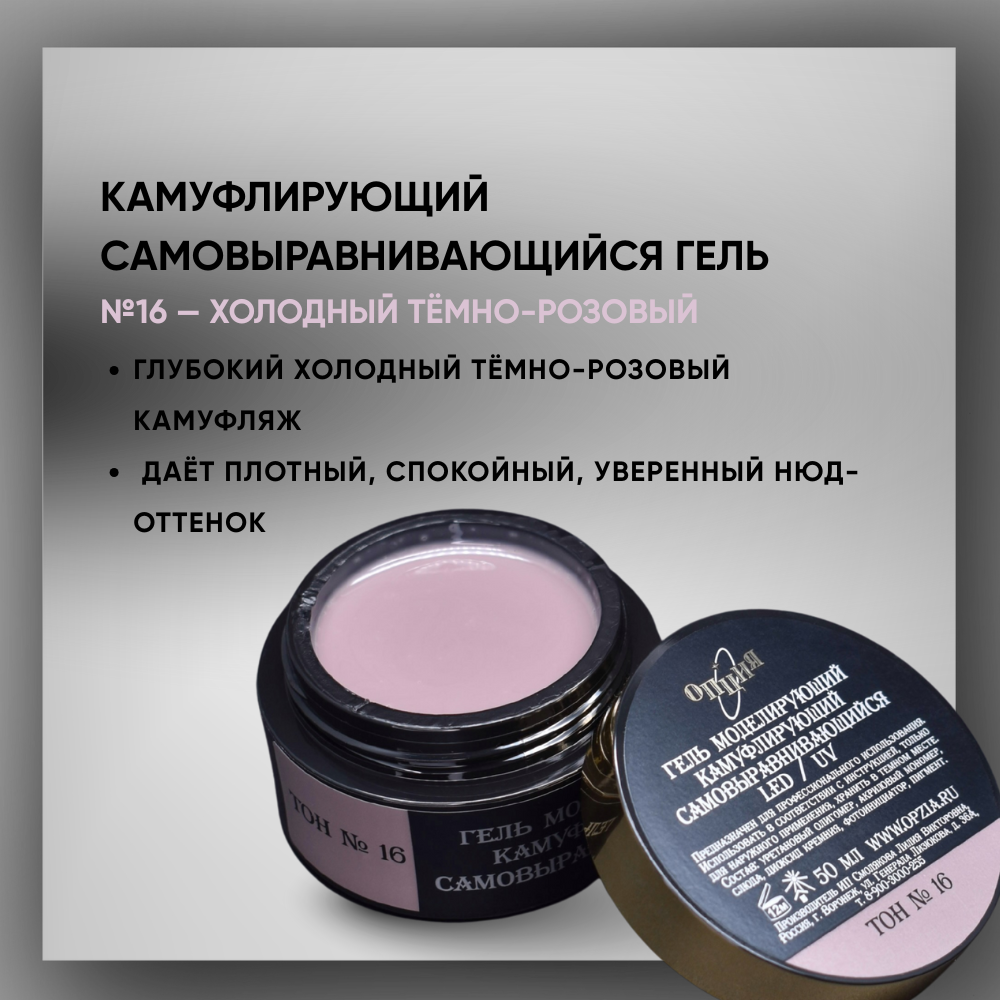 Гель ТМ Опция Тон 16, самовыравнивающийся, камуфлирующий темно-розовый (холодный)., 15 мл.