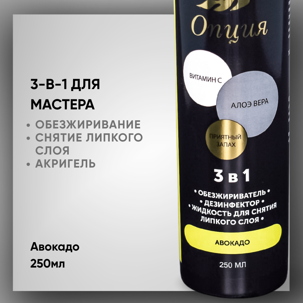 Обезжириватель, Дезинфектор, Жидкость Для Снятия Липкого Слоя, ТМ Опция, 250мл