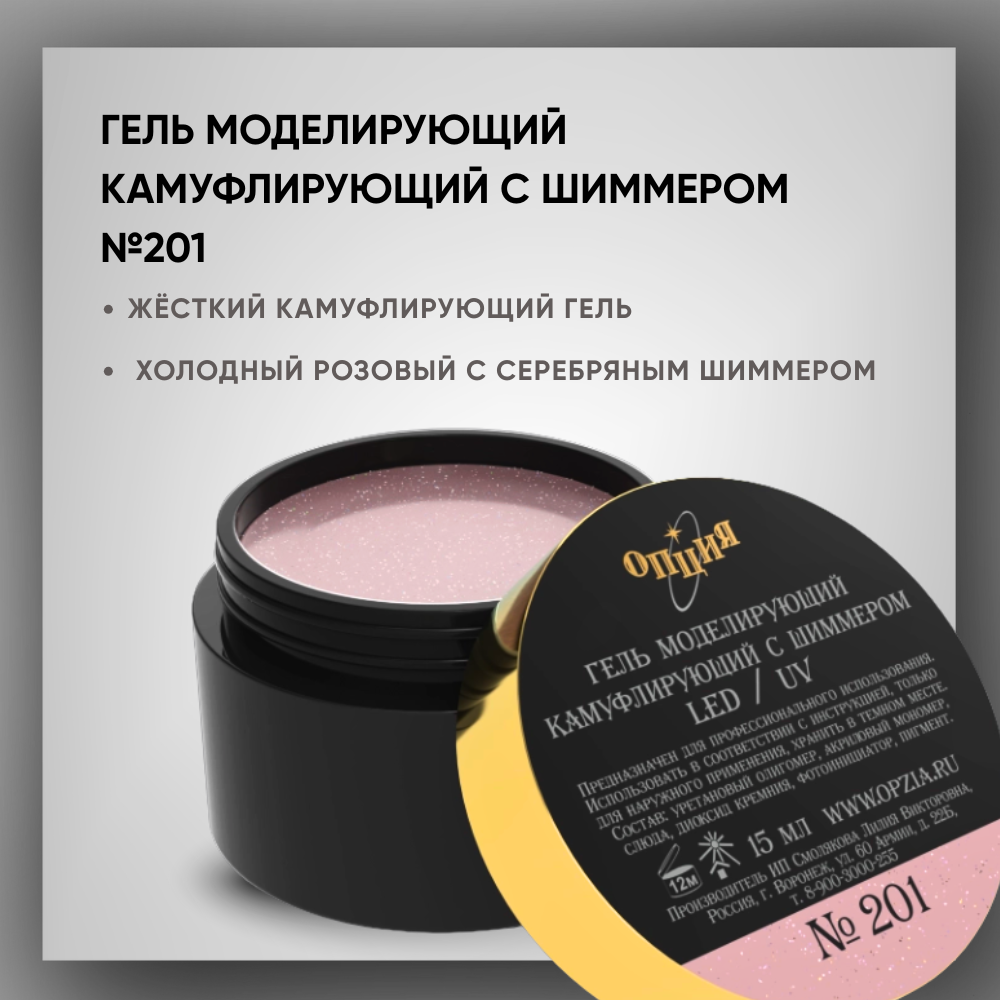 №201 Гель моделирующий камуфлирующий с шиммером, 15 мл — ТМ Опция