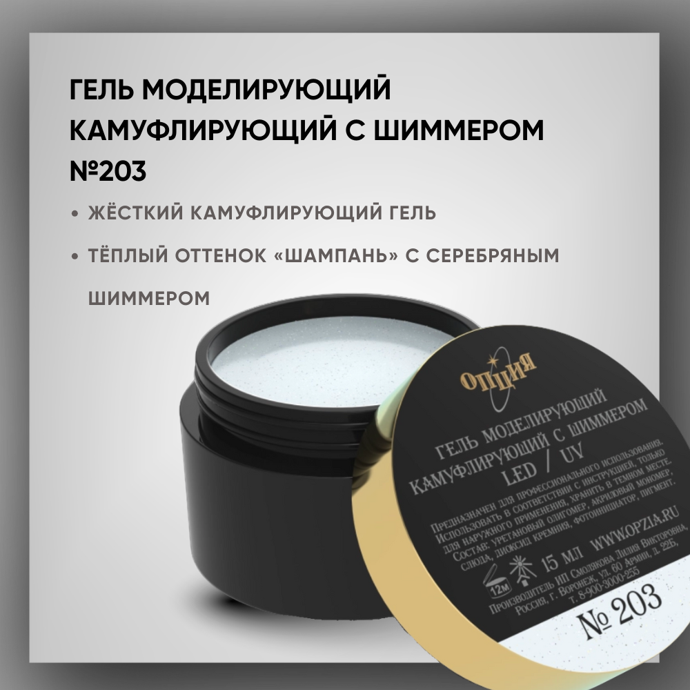 №203 Гель моделирующий камуфлирующий с шиммером, 15 мл — ТМ Опция
