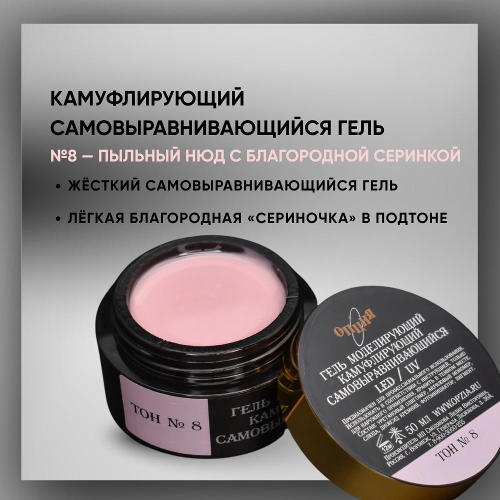Гель ТМ Опция камуфлирующий самовыравнивающийся Тон №8, 15 мл.