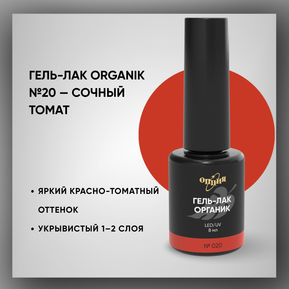 Гель-лаки Органик №020 Сочный Томат, 8 мл.