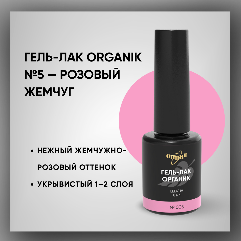 Гель-лаки Органик №005 Розовый Жемчуг, 8 мл.
