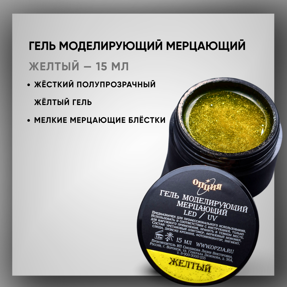Гель моделирующий мерцающий "Желтый" 15 мл.