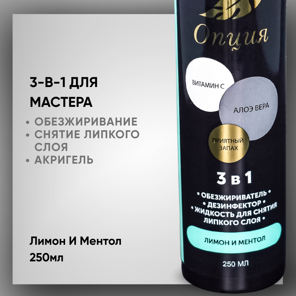 Обезжириватель-дезинфектор, жидкость для снятия липкого слоя 3 в 1 (Лимон и ментол) 250мл